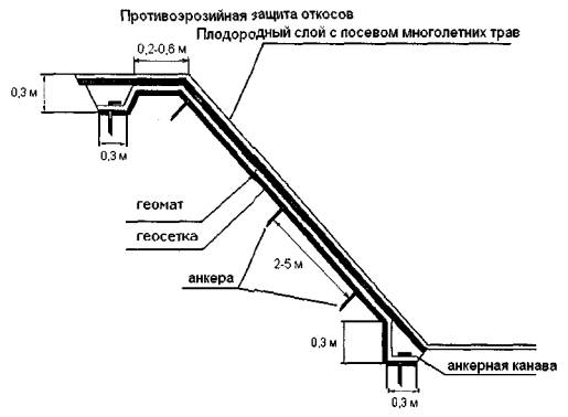 Рис. 2. Схема противоэрозийной защиты откосов Журнал «Ценообразование и сметное нормирование в строительстве», сентябрь 2009 г. № 9