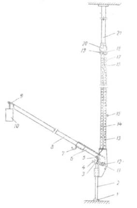 Рис. 2 Схема размещения испытательных точек на опытном участке полг 7.2 Определение деформации полов включает следующие этапы 7.2.1 На бетонное основание (при лабораторных исследованиях) или на пол (при испытании реальных полов) укладывается металлический лист толщиной не менее 2 мм и с линейными размерами не менее 500 × 500 мм и намечают на плите центральную точку. 7.2.2 Устанавливают прибор в вертикальном положении таким образом, чтобы штамп или ролик (1) упирался в центральную точку металлического листа и закрепляют стойку (2) винтом (4). 7.2.3 Придерживая прибор, выдвигают верхнюю стойку (21) внутри стойки (13) до упора в потолок помещения и закладывают штырь (15) в отверстие в стойке (13) под нижний конец стойки (21). 7.2.4 Закрепляют индикатор (20) винтом (18) в хомуте (19), который также укрепляется винтом на стойке (13). Хомут устанавливается в такое положение, чтобы штифт индикатора опирался на торец (16) измерительного стержня (14) и находился в своем верхнем положении при показании по красной шкале индикатора 0-1 мм. 7.2.5 Открепляют штырь (15) отвинчивая винт (4) и регистрируют показание на индикаторе. 7.2.6 Подвешивают на крюк (9) груз массой 6 кг (при испытании зыбкости пола в жилых помещениях) или 18 кг (при испытании зыбкости пола в общественных помещениях). 7.2.7 Регистрируется температура и относительная влажность воздуха. 7.2.8 После выдержки прибора в нагруженном состоянии в течении двух суток по разности показаний индикатора определят величину деформации стойки прибора и перекрытия (D1) 7.2.9 Снимается груз, разбирается прибор, устанавливается на намеченную точку 1 на опытном участке пола или на реальном полу и повторяются испытания в соответствии с рекомендациями п. 7.2.2-7.2.7. По разности показаний индикатора определят величину деформации в точке 1 (D2-1) 7.2.10 Последовательно проводят определение величины экспериментальной деформации и в точках 2 (D2-2) и 3 (D2-3). Если разница между значениями замеров составляет более 10%, проводятся дополнительное испытание в точке 4 (D2-4). 7.3 Результирующее значение деформации D2 определяется среднеарифметическим значением замеров по результатам трех измерений. При проведении четырех испытании отбрасывается максимально отличающееся значение. 7.4 Используя полученные результаты расчета результирующего значения деформации и определения деформации стойки прибора и перекрытия, определят деформацию пола по формуле: D = D2 - D1 , где D - деформация пола в точке; D2 - результирующее значение экспериментальной деформации пола; D1 - деформация стойки прибора и перекрытия; 8. ОЦЕНКА ЗЫБКОСТИ ПОКРЫТИЙ ПОЛАПолы относятся к прочным и обладают стойкостью против деформаций под действием сосредоточенных нагрузок (не обладают свойством «зыбкости») при условии, что величина деформацию пола составляет менее 2 мм. 9. ОТЧЕТ О ИСПЫТАНИЯХОтчет должен содержать следующее: - ссылку на данный стандарт - конструкцию пола, использованные материал, их поставщика, толщину слоев - дата устройства реального пола - дату проведения испытаний - расположение помещения (при испытании реального пола) - схему помещения с указанием расположения испытательных точек (при испытании реального пола) - температуру и относительную влажность в помещении - количество мест замеров - величину деформации стойки прибора и перекрытия (D1) - величины экспериментальной деформации в точках и их ср