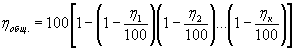где ск и Vк - соответственно концентрация загрязняющего вещества (г/нм/3) после очистки; сн и Vн - то же до очистки, ηобщ,- общая степень очистки установки, состоящей из нескольких ступеней (%), -определяется по формуле: