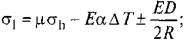 где σh - кольцевое напряжение от внутреннего давления, Па, определяемое по формуле (13.7); σl - продольное напряжение, МПа; τ - касательное напряжение (напряжение сдвига), МПа. 13.3.11 Продольные напряжения в подземных и наземных (в насыпи) газопроводах следует определять с учетом упругопластической работы материала труб. Расчетная схема участка газопровода должна отражать условия работы газопровода и взаимодействие его с фунтом. 13.3.12 Продольное и касательное напряжения определяются из выражений; - продольные напряжения; - для полностью защемленного подземного газопровода: - полностью свободного (надземного) газопровода: