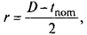 где R - радиус кривизны отвода, м; tпоm - номинальная толщина стенки отвода, м; r - радиус средней линии сечения отвода, м, вычисляемый по формуле
