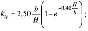 где g - ускорение свободного падения м/с2; γ0 - плотность грунта ненарушенной структуры, кг/м3; H - высота засыпки от поверхности земли до верхней образующей трубы, м; kbf - коэффициент, учитывающий уменьшение плотности грунта засыпки по сравнению с грунтом ненарушенной структуры; ktr - коэффициент вертикального давления грунта в траншее. 13.6.4 Коэффициент вертикального давления грунта в траншее ktr вычисляют в зависимости от размеров траншеи по формулам: - для песчаных и супесчаных грунтов засыпки: