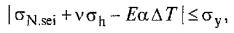 где σh - кольцевое напряжение от внутреннего давления; Рd - расчетное внутреннее давление, МПа; D - наружный диаметр трубы, мм; tп - толщина стенки трубы номинальная, мм; σу - нормативный предел текучести материала труб, МПа; σu - нормативный предел прочности материала труб, МПа; Fy - расчетный коэффициент по пределу текучести, принимаемый по таблице 9 в зависимости от категории участка газопровода; Fu - расчетный коэффициент по пределу прочности, принимаемый по таблице 9 в зависимости от категории участка газопровода. 13.3.9 Проверка условий прочности для продольных и эквивалентных напряжений следует выполнять по формулам