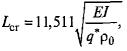 где α - коэффициент линейного расширения материала труб, °С-1 Е0 - модуль упругости материала труб, МПа; ΔT - температурный перепад, °С; μ0 - коэффициент Пуассона материала труб; Аs - площадь поперечного сечения трубы (стали), м2; Аi - площадь поперечного сечения трубопровода «в свету», м2; Pd - расчетное внутреннее давление, МПа. 13.5.4 Для приближенной оценки общей устойчивости участка магистрального газопровода может быть использован порядок расчета, приведенный в 13.5.5-13.5.9. 13.5.5 Значение критического продольного усилия вычисляют по формуле
