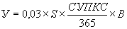 где: У - размер причиненного вреда (руб.); S - площадь незаконно используемого земельного участка (кв.м); СУПКС - средний удельный показатель кадастровой стоимости для фактического использования земельного участка в соответствующем кадастровом квартале; В - период незаконного использования земельного участка (календарные дни).