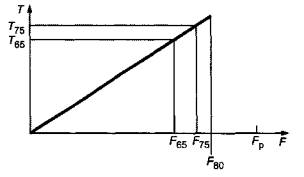 - Т75 - верхнее предельное значение крутящего момента для определения общего коэффициента трения при F75;