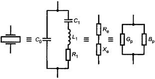 Рисунок 1 - Обозначения и эквивалентная электрическая схема пьезоэлектрического резонатора Примечание 1 - Эта эквивалентная схема не отражает все характеристики кварцевого резонатора. Примечание 2 - Значения Re, Хе, Gp и Вр очень резко изменяются вблизи резонансной частоты. Re - последовательное активное сопротивление эквивалентной схемы резонатора; Хе - последовательное реактивное сопротивление эквивалентной схемы резонатора; Gp - параллельная активная проводимость эквивалентной схемы резонатора; Вр - параллельная реактивная проводимость эквивалентной схемы резонатора. Обозначения, используемые в настоящем стандарте, приведены в таблице 1. Таблица 1 - Перечень обозначений, используемых для эквивалентной электрической схемы пьезоэлектрического резонатора