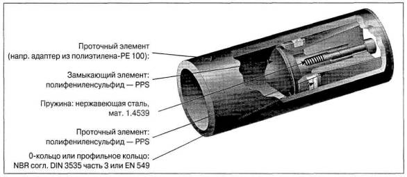 Рисунок А.1 Конструкция клапана по расходу PipeLife GS®. По данным фирмы-изготовителя срок службы клапанов - не менее 50 лет. Клапаны по расходу PipeLife GS® по варианту монтажа подразделяются: - тип GS - клапан, предназначенный непосредственно для монтажа в трубу или в ответвление седлового отвода (рис. А.2),