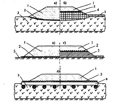Усиление основания, предотвращение взаимопроникновения грунта насыпи и основания |
