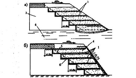 Замена (защита) обратного фильтра, снижение напора выклинивающихся грунтовых вод, предотвращение эрозии откоса. |