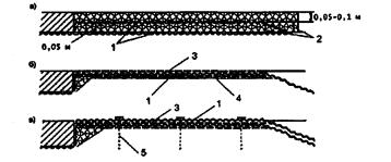 м) Геомембраны - гидроизоляционные материалы на основе пленочных или обрабатываемых вяжущим, как правило на месте производства работ, нетканых ГМ. Последние отличаются большей надежностью вследствие, прежде всего, повышенной стойкости к возможным местным повреждениям в процессе строительства и эксплуатации. Кроме того, геомембраны на основе нетканых геотекстильных материалов имеют более широкую область применения - помимо создания гидроизолирующих прослоек для снижения притока воды в рабочий слой земляного полотна применимы также для укрепления сооружений поверхностного водоотвода.