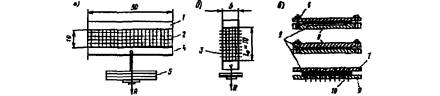 е) Плоские георешетки (геосетки) отличаются высокими механическими характеристиками и применяются для создания армирующих прослоек. Полимерными геосетками армируют основания дорожных одежд из крупнофракционных материалов, откосы насыпей, геосетками из стекло- или базальтового волокна - верхние слои дорожных одежд из разного вида асфальтобетонов. Геосетки обычно имеют ячейки с линейными размерами от 5 до 40 мм. Наличие и размер ячеек, толщина элементов определяют механические характеристики материалов и степень их связи с материалами контактирующих слоев.