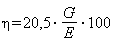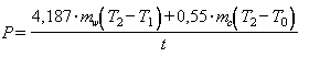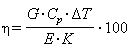 где: G - масса алюминиевого блока, кг; Ср - удельная теплоемкость используемого при измерении алюминиевого блока, равная 0,22 ккал/кг·°С (или 0,214 ккал/кг·°С при 20°С); ΔТ - превышение температуры, равное 80°С; Е - потребление энергии, Вт·ч; К - коэффициент перевода ватт-часов в килокалории, равный 0,86. При подстановке в формулу (1) известных значений Ср, ΔТ и К она принимает вид