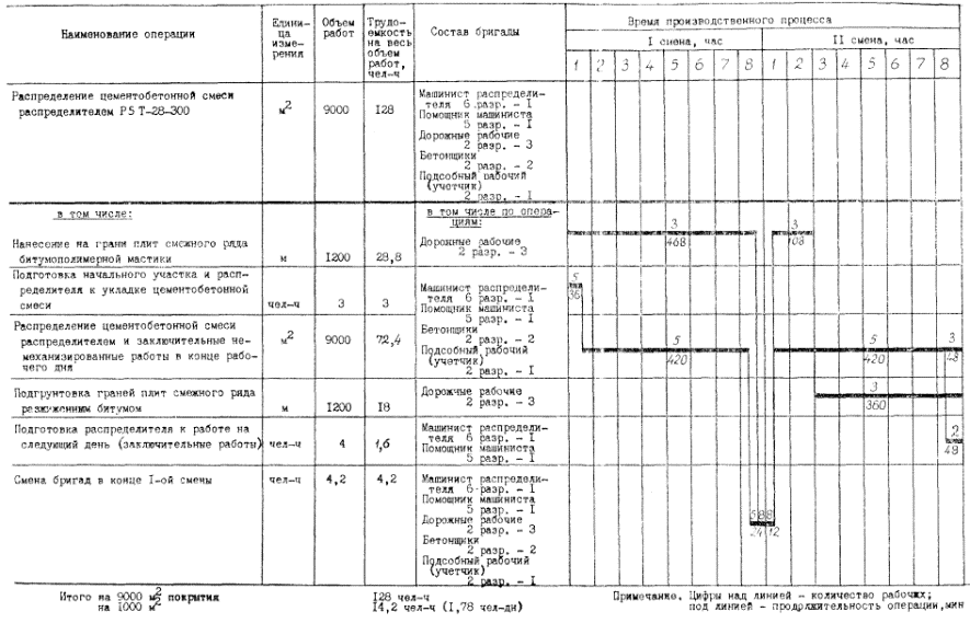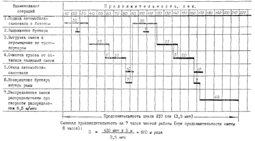 V. ГРАФИК ПРОИЗВОДСТВЕННОГО ПРОЦЕССА НА РАСПРЕДЕЛЕНИЕ ЦЕМЕНТОБЕТОННОЙ СМЕСИ РАСПРЕДЕЛИТЕЛЕМ PST-28-300 НА ДВУХ ЗАХВАТКАХ ДЛИНОЙ 1200 м (9000 м2 ПОКРЫТИЯ)