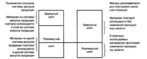 Рисунок 13-Различие между техническим описанием продукционной системы и процедурами распределения для рециклинга 8.2 Общее представлениеПриведены три следующих примера: замкнутый цикл, разомкнутый цикл с методом замкнутого цикла и только разомкнутый цикл (рисунок 14).