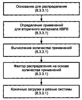 распределения. Поэтому следует использовать третий вариант, указанный в ГОСТ Р ИСО 14041, т.е. экономическое распределение. Можно предположить, что в среднем за последние 8 Примеры применения методов распределения для повторения цикла или операции8.1 Содержание ГОСТ Р ИСО 14041Для повторения цикла в ГОСТ Р ИСО 14041 указано следующее. В пункте 6.5.4 «Принципы и процедуры распределения, приведенные в 6.5.2 и 6.5.3, также применяют для процессов повторного использования и рециклинга. Однако такие ситуации требуют учета дополнительных факторов по следующим причинам: а) при повторном использовании и рециклинге (так же как при компостировании, использовании вторичных энергоресурсов и других процессов, которые могут быть отнесены к повторному использованию/рециклингу) можно предполагать, что входные и выходные потоки, связанные с единичными процессами для удаления и обработки сырьевых материалов и конечной утилизации продукции, могут быть распределены между продукционными системами; б) повторное использование и рециклинг могут изменить соответствующие свойства материалов при их последующем использовании; в) особое внимание необходимо при определении границ системы относительно процессов восстановления. Некоторые процедуры распределения применимы для повторного использования и рециклинга. При этом следует учитывать изменение соответствующих свойств материалов. Некоторые процедуры, приведенные на рисунке 13 и различающиеся по приведенным параметрам, служат иллюстрацией к рассмотрению следующих ограничений: - процедуры распределения закрытого типа применяют к продукционным системам с замкнутым контуром. Они также применимы к продукционным системам с открытым контуром, если не происходит изменение присущих материалам свойств, подвергшихся рециклингу. В таких случаях необходимость распределения отсутствует, так как использование вторичных материалов заменяет использование исходных (первичных) материалов. За первым использованием исходных материалов применительно к продукционным системам с открытым контуром могут следовать процедуры распределения открытого типа; - процедуры распределения открытого типа применяют к продукционным системам с открытым контуром, где материал подвергается рециклингу в других продукционных системах и при этом происходят изменения свойств, присущих этим материалам. Процедуры распределения для разделенных единичных процессов (6.5.3) должны использовать как основу для распределения следующие данные: - физические свойства; - экономически выгодные значения (например, значение лома по отношению к значению первичных материалов); - количество последующих использований материалов, подвергшихся рециклингу. Для процессов восстановления границы между исходной и последующей продукционными системами должны быть идентифицированы и обоснованы при обеспечении соблюдения принципов распределения (6.5.2)».