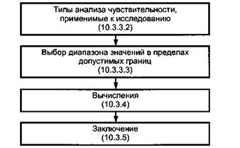 Рисунок 23 - Пример общего подхода 10.3.1 Общие положения Анализ чувствительности может быть проведен путем изменения основных параметров анализа ИАЖЦ и их последующего пересчета, чтобы можно было сравнить результаты с базовой ситуацией. Анализ чувствительности включает в себя: - представление параметров, соответствующих ключевым пунктам испытаний; - изменение этих параметров для того, чтобы пересчитать ИАЖЦ для каждого анализа; - оценку чувствительности параметров путем сравнения результатов ИАЖЦ. При проведении анализа чувствительности некоторые параметры должны быть установлены конкретно для каждого анализа. Число вычислений зависит от конкретного анализа чувствительности, проводимого пользователем. Примеры ключевых элементов для рассмотрения включают в себя следующее: - выбор функциональной единицы; - неопределенность значения данных, входящих в установленный диапазона значений для потребления электричества, расстояния транспортирования и т.д.; - неопределенность границ системы (география, время), выбор модели выработки электроэнергии и т.д.; - другие методологические выборы, правила распределения, правила отбора данных, отказ от изучения этапа производства неэлементарного потока и т.д. Результатом анализа чувствительности может быть: -исключение стадий жизненного цикла или подсистем в том случае, когда недостаток значимости может быть определен с помощью анализа чувствительности; - исключение материальных потоков, которые не признаны значимыми для результатов исследования; - включение новых типовых процессов, значимость которых определена в процессе проведения анализа чувствительности. 10.3.2 Приоритетность проверяемых параметров Анализы чувствительности проводят для того, чтобы проверить эффект, который ключевые допущения и изменчивость данных оказывают на результаты исследования ИАЖЦ. Общим подходом к анализу чувствительности является изменение входа данных для выбранных независимых переменных (например, изменение потребления горючего в типовом процессе на плюс 10 % или минус 10 %). В случае попытки установить приоритет независимым переменным дисперсионный анализ может быть применен для определения того, какая из этих переменных существенно влияет на результаты исследования. Концептуальные размышления вне индекса дисперсии предполагают, что четыре фактора могут влиять на значимость, которую независимая переменная имеет для результатов исследования: - количественный вклад данной категории данных для типового процесса в количественный вклад данной категории данных для производственной системы; - относительная важность данной категории данных (фактор чувствительности); - изменчивость данных для типового процесса в данной категории данных; - полнота вхождения в категорию данных. Типовые процессы с более высоким процентным вкладом оказывают большее влияние на результаты инвентаризации. Категории данных, отнесенные к материальным, энергетическим потокам и выбросам, имеют разное экологическое влияние. Точность набора данных непосредственно корректируется погрешностью результатов инвентаризации, в то время как полнота комплекта данных имеет отрицательную корреляцию. 10.3.3 Выбор проверяемых параметров Как только параметры, представляющие интерес, установлены в качестве приоритетных, необх