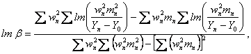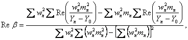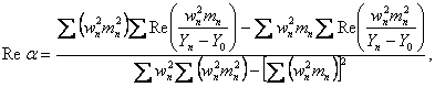 линейной регрессионной зависимостью от тп методом наименьших квадратов - обычным (когда все весовые коэффициенты wn равны единице) или взвешенным, когда измерению с n-м добавленным грузом приписывают весовой коэффициент wn. Свободный член α и коэффициент β при линейном члене регрессионной зависимости получают для каждой частоты и амплитуды ускорения, использованных при калибровке. Применение взвешенного метода наименьших квадратов позволяет получить следующие формулы для комплексных величин α и β:
