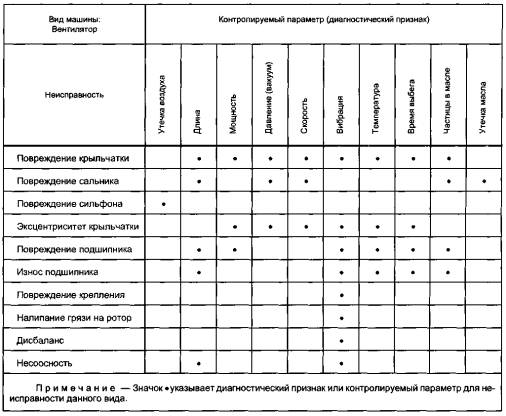 Рисунок В.2 - Соответствие между неисправностями вентилятора и контролируемыми параметрами