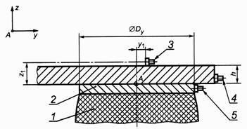 1 - изолятор; 2 - установочный фланец изолятора; 3 - положение 1-го акселерометра (x1, y1, z1); 4 - положение 2-го акселерометра (х2, у2, z2); 5 - положение 3-го акселерометра (х3, у3, z3) Рисунок 5 - Возможные положения акселерометра для измерений vy - акселерометр расположен на торце опоры, если выполнены следующие условия: