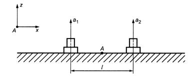 Рисунок 6 - Измерение скорости поступательного и углового движения Суммированием выходных сигналов a1(t) и a2(t) пары акселерометров определяют ускорение az(t) поступательного движения в направлении z по формуле