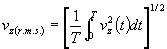 где f - среднегеометрическая частота третьоктавной полосы частот. Примечание - Результат вычисления скорости вышеописанным методом является приближенным. Если вибрация машины является широкополосной (белым шумом), то случайная погрешность измерений метода может достигать ±0,2 дБ. Если сигнал вибрации состоит из составляющих на дискретных частотах, то погрешность измерений может достигать ±1 дБ. Погрешность метода можно исключить, если вместо ускорения измерять непосредственно сигнал скорости. Среднеквадратичное значение скорости vz(r.m.s.) находят по формуле