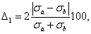 11.12 Вычисляют отношения D1, %, и D2, %, между значениями эффективных высот шероховатости sа, sb, sс, sd по формулам
