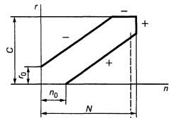 7 Выбор плана испытаний7.1 Определяют вид плана испытаний. Одноступенчатые планы испытаний применяют в том случае, если: - экономия затрат на проведение испытаний не имеет существенного (решающего) значения; - возможен период приработки изделий в начале испытаний. Последовательные усеченные планы испытаний применяют в том случае, если: - экономия затрат на проведение испытаний имеет существенное значение; - отсутствует период приработки изделий в начале испытаний. 7.2 Из планов испытаний, приведенных в приложении А, соответствующих установленному (заданному) набору исходных данных, выбирают конкретный план испытаний определенного вида, наиболее подходящий к конкретным условиям с учетом ограничения максимального числа наблюдений N (максимальной продолжительности испытаний). 7.3 В конкретных условиях ограничение N отличается от значений, установленных в приложении А. Кроме того, поставщик может быть готов рисковать больше потребителя. В этих случаях могут быть более предпочтительными другие планы испытаний. Допускается применять другой план испытаний, если имеется возможность вычислить его характеристики и установить, что выбранный (найденный) план испытаний является более предпочтительным. Теоретические основы планов испытаний приведены в приложении Б. 8 Таблицы и графики планов испытаний8.1 Для одного набора исходных данных в приложении А приведены два плана испытаний: последовательный усеченный план и одноступенчатый план. 8.2 Планы испытаний приведены в виде таблиц, устанавливающих границы приемки и браковки. 8.3 Границы планов испытаний не могут быть установлены таким образом, чтобы истинные значения обоих рисков были равны установленным значениям. В приложении А приведены планы испытаний с истинными значениями рисков, максимально близкими к установленным значениям. 9 Методика испытаний и правила принятия решений9.1 Изделие (или несколько изделий) подвергают испытаниям в соответствии с программой испытаний и последовательно суммируют учитываемое число наблюдений и учитываемое число отказов. 9.2 По результатам суммирования наблюдений и отказов строят график плана испытаний в виде ступенчатой линии реализации процесса отказов, состоящей из единичных горизонтальных или диагональных скачков, как показано на рисунке 1.