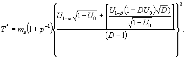 Исходные данные для определения плана испытаний: U0 = 0,10; U1 =0,20 (D = 2); α = β = 0,05; р = 1 (продолжительность неработоспособного состояния изделия предполагают распределенной экспоненциально).