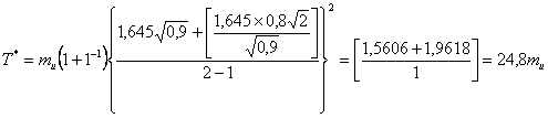 F1-α(2pn; 2n)F1-β(2n; 2pn) = F09(40; 20)F095(40; 20) = 1,71×1,84 = 3,15.