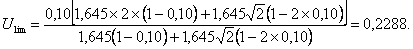 Ulim = F1-α(2pn; 2n)U0/(1 - U0) = F09(20; 10)U0/(1 - U0) = 2,20×0,01/0,99 = 0,0222.
