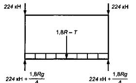 6.2.2 Проведение испытания Контейнер устанавливают на четырех плоских подкладках, расположенных на одном уровне, по одной под каждым нижним угловым фитингом. Геометрические центры подкладок и фитингов, а также их размеры должны совпадать. На контейнер должна воздействовать нагрузка, равномерно распределенная по площади пола. При этом сумма собственной массы контейнера и испытательной нагрузки должна составлять 1,8R. Контейнер подвергают воздействию вертикальных нагрузок, приложенных либо по всем четырем верхним угловым фитингам одновременно, либо к каждой паре торцевых фитингов, в соответствии с данными таблицы 2. Эти нагрузки воздействуют через специальные испытательные приспособления, имеющие угловые фитинги в соответствии с ГОСТ Р 51891 или заменяющие их эквивалентные элементы с теми же геометрическими очертаниями (то есть с такими же наружными размерами, конфигурациями отверстий и округлением кромок), как у нижних поверхностей нижнего углового фитинга по ГОСТ Р 51891. Конструкция эквивалентных элементов (при их применении) должна обеспечивать такое же воздействие испытательных нагрузок на контейнер, как при использовании угловых фитингов. Во всех случаях нагрузки следует прилагать так, чтобы угловое смещение плоскостей, к которым приложены силы по отношению к плоскости опоры, было минимальным. Каждый нижний угловой фитинг или эквивалентный элемент испытательной установки должен
