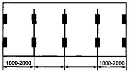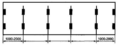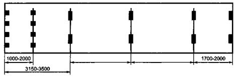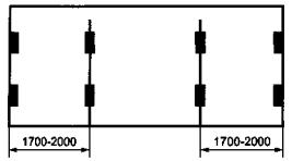 Рисунок В.2 - Размещение четырех пар опорных площадок (одна пара на каждом торце плюс две промежуточные пары) |