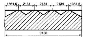 Примечание - Там, где тоннель имеет сплошные боковые элементы, опорные площадки, изображенные на рисунке В.10, в пределах расстояния 3150-