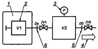 1 - зона, в которой проводится испытание на разбавление; 2 - вход продувочного инертного газа; 3 - потенциальный источник утечки с номинальной зоной разбавления; 4 - выход продувочного газа