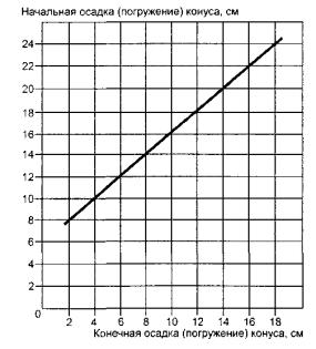Рисунок 1 - Критерий сохраняемости подвижности 8.5 Испытание добавок, увеличивающих воздухо-(газо) содержание8.5.1 Испытание добавок для смесей тяжелых и мелкозернистых бетонов 8.5.1.1 Эффективность действия воздухововлекающих и газообразующих добавок оценивают по изменению объема вовлеченного воздуха или по количеству выделившегося газа в смесях основных составов по сравнению с контрольным. 8.5.1.2 Контрольный и основные составы бетонных смесей приготавливают марки по удобоукладываемости П2 (ОК = 6-8 см). 8.5.1.3 Количество вовлеченного воздуха или выделившегося газа определяют компрессионным методом по ГОСТ 10181, подраздел 6.3. 8.5.1.4 На отобранных из замесов пробах определяют: - содержание вовлеченного воздуха - в смесях контрольного состава; - содержание вовлеченного воздуха для воздухововлекающей добавки или газообразной фазы (суммарное количество вовлеченного воздуха и выделившегося газа) для газообразующей добавки - в смесях основных составов. 8.5.1.5 Содержание воздуха в смесях с воздухововлекающими добавками определяют непосредственно после окончания перемешивания смеси, количество выделившегося газа - через 1 ч после окончания перемешивания. Дополнительные испытания (если необходимо) проводят на новых порциях смеси через заданные промежутки времени, устанавливаемые в зависимости от свойств добавки. Бетонные смеси, на которых повторно определяют количество вовлеченного воздуха (выделившегося газа), повторно не перемешивают. 8.5.1.6 Изменение объема воздуха (газа) в смесях тяжелых и мелкозернистых бетонов AVB, %, определяют по формуле ΔVв = Vвосн - Vвконтр, (5) где Vвосн и Vвконтр - объем воздуха (газа) в основных и контрольном составах смеси, %. 8.5.2 Испытание добавок для смесей легких конструкционных, конструкционно-теплоизоляционных и теплоизоляционных бетонов 8.5.2.1 Эффективность действия воздухововлекающих добавок оценивают по объему вовлеченного воздуха (выделившегося газа) в смесях основных составов, которые изготавливают марок по удобоукладываемости П1 при плотности смеси 1600 кг/м3 и более и П2 - при плотности смеси не менее 1600 кг/м3. 8.5.2.2 Объем вовлеченного воздуха (выделившегося газа) определяют по ГОСТ 10181. 8.5.2.3 Потерю газовой фазы ΔVв, %, определяют на новых порциях смеси по 8.5.2.2 через 15 мин после ее приготовления и вычисляют по формуле