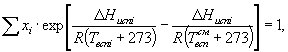 хi - мольная доля i-го компонента в смеси (в жидкой фазе);