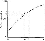 Рисунок К.2 - Зависимость длины и глубины трещиноподобного дефекта от временного параметра
