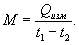 где i1 - энтальпия воды при температуре t1, кДж/кг; i2 - энтальпия воды при температуре t2. кДж/кг. Энтальпию воды определяют по таблицам термодинамических свойств воды при давлении 120 кПа. Расход воды через прибор М, кг/с, определяют исходя из общего расхода воды m, кг, за время наблюдения t, с, по формуле