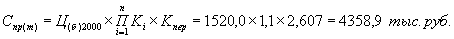 Спр(б) = Ц(б)2000 × Kсл.з. = 1530,8 × 1,45 = 2219,7 тыс. руб.