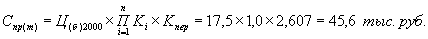 Спр(б) = Ц(б)2000 × Kсл.з. = 17,5 × 1,0 = 17,5 тыс. руб.