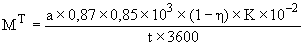 где: а - максимальный расход растворителя ПХЭ за смену, кг; 0.85 - доля технологического выброса; t - продолжительность смены, ч; К - коэффициент проветривания загрузочной камеры в долях единиц. Значение величины К определяется следующим образом: зная производительность обезжиривающей машины (кг/смену) и ее единовременную загрузку (кг), определяют количество загрузок в смену. Рабочий цикл машины длится 30 - 40 минут, из них время проветривания загрузочной камеры составляет 5 минут, умножая это время на число загрузок, определим сколько времени будет длиться выброс в течение смены. Если технологический выброс осуществляется с предварительной очисткой в адсорбере, то максимальный выброс вредного вещества определяется по формуле: