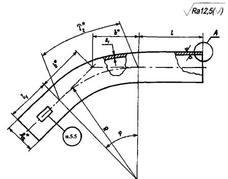2 Нормативные ссылкиВ настоящем стандарте использованы ссылки на следующие нормативные документы: СТО ЦКТИ 10.003-2007 Трубопроводы пара и горячей воды тепловых станций. Общие технические требования к изготовлению ТУ 3-923-75 Трубы котельные бесшовные механически обработанные из конструкционной марки стали. Технические условия ТУ 14-3Р-55-2001 Трубы стальные бесшовные для паровых котлов и трубопроводов. Технические условия ТУ 1310-030-00212179-2007 Трубы бесшовные горячедеформированные механически обработанные из углеродистой и легированных марок стали для трубопроводов ТЭС и АЭС. Технические условия. 3 Термины, определения и обозначения3.1 В настоящем стандарте применяют следующие термины с соответствующими определениями: 3.1.1 отвод: Деталь, предназначенная для плавного изменения направления потока рабочей среды на угол от 15° до 90°. 3.1.2 исполнение: Совокупность особенностей деталей в размерах, материалах, технических требованиях, определяющих их технические характеристики и применяемость. 4 Конструкция и размеры4.1 Конструкция и основные размеры гнутых отводов должны соответствовать указанным на рисунках 1-5 и в таблице 1. 4.2 Допускается изготовление гнутых отводов с углами гибов более 15°, отличающихся от указанных в настоящем стандарте. Угол гиба должен быть кратным 5, но не более 90°. 4.3 Допускается изготовление гнутых отводов с отличающимися от указанных в настоящем стандарте длинами прямых участков l и l1: не менее 100 мм - для исполнений 031-040, 066-075; не менее (Da+200) мм - для исполнений 041-065, 076-110, 121-125. 4.4 Допускается изготовление отводов с разделкой под сварку по типу С4 и С5 в соответствии с СТО ЦКТИ 10.003. 4.5 Относительная овальность (а), должна соответствовать значению, указанному в таблице 1. 5 Технические требования5.1 Масса гнутого отвода определяется по формуле G = 0,001 Lpg, где Lp = l + l1 + l2, g - масса 1 м трубы, кг. 5.2 Маркировка и остальные технические условия - по СТО ЦКТИ 10.003. 5.3 Исполнения, указанные в скобках, применять по согласованию с предприятием-изготовителем отводов. 5.4 Пример условного обозначения гнутого отвода исполнения 033 с углом гиба φ = 45° и радиусом R = 300 мм из трубы наружным диаметром Da = 57 мм, с толщиной стенки s = 4,0 мм, с прямыми участками длиной l = 150 мм, l1 = 150 мм и длиной развертки Lp = 536 мм: ОТВОД ГНУТЫЙ 45°-57×4-150×150×536-Л300 033 СТО ЦКТИ 321.02 5.5 Пример маркировки: 033