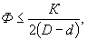 где d - внутренний диаметр контролируемого сварного соединения, мм; D - наружный диаметр контролируемого сварного соединения, мм; Ф - максимальный размер фокусного пятна источника излучения, мм; К - требуемая чувствительность контроля, мм. Приведенное соотношение между внутренним и внешним диаметром контролируемого соединения может не соблюдаться, если размеры дефектов не определяются (например, когда дефекты не допускаются независимо от их размеров). 8.2 При отсутствии источника излучения, удовлетворяющего требованиям п. 8.1, допускается при контроле по схеме рисунка 2 и использовать источники излучения с максимальным размером фокусного пятна, удовлетворяющим соотношению: