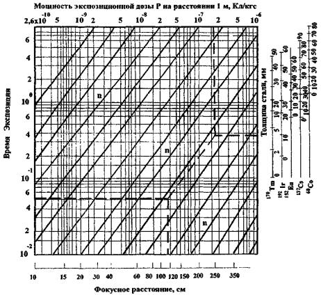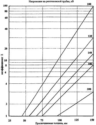 8.15 Ориентировочно определение экспозиции при радиографическом контроле рекомендуется производить по методикам, приведенным в приложении К, с последующим уточнением опытным путем. Таблица 9 - Коэффициент перехода по времени экспозиции от пленки РТ-1 к другим пленкам