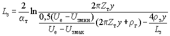 где Lз - длина защитной зоны, м; cth - гиперболический котангенс.
