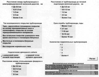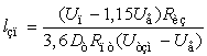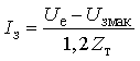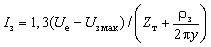 где rз - удельное сопротивление земли в поле токов катодной защиты, Ом×м; Zт - входное сопротивление трубопровода, Ом, определенное на конечный период эксплуатации данной УКЗ; в) силу тока катодной установки, Iз, А, определяют на начальный и конечный периоды эксплуатации из выражения: