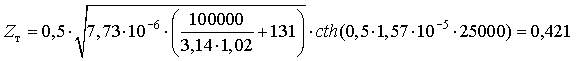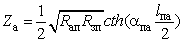 где rас - удельное электрическое сердечника сопротивление анода, Ом×мм2/м (для меди rа = 0,017 Ом·мм2/м); Sас - сечение сердечника анода, мм2. г) входное сопротивление протяженного анода Zпa, Ом, при условии, что точка дренажа разбивает защищаемый участок трубопровода на плечи равной длины, равно: