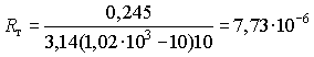 где rт - удельное сопротивление материала трубы, Ом·мм2/м (принимается равным 0,245 Ом·мм2/м); Dт - диаметр трубопровода, м; dт - толщина стенки трубопровода, мм. б) сопротивление окружающего трубу грунта (Rp, Ом×м) (сопротивление растеканию трубопровода) определяют по следующему выражению: