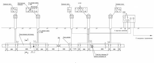 Рисунок В.6 - Схема подключения протекторных групп на кожухах на переходах нефтепровода через автомобильные и железные дороги